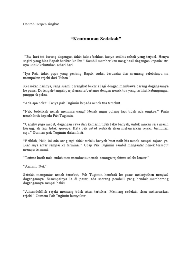 Contoh Cerpen Singkat Pendidikan Mengajarkan Tentang Bersikap Rendah Hati 2. Mimpi Sang Dara Mimpi Sang Dara Pagi menjelang saat seorang gadis yang biasa dipanggil dengan nama Dara mulai. Contoh Cerpen Terbaik Terdiri atas.